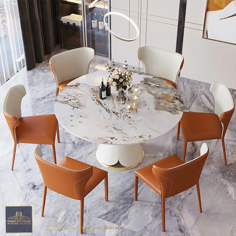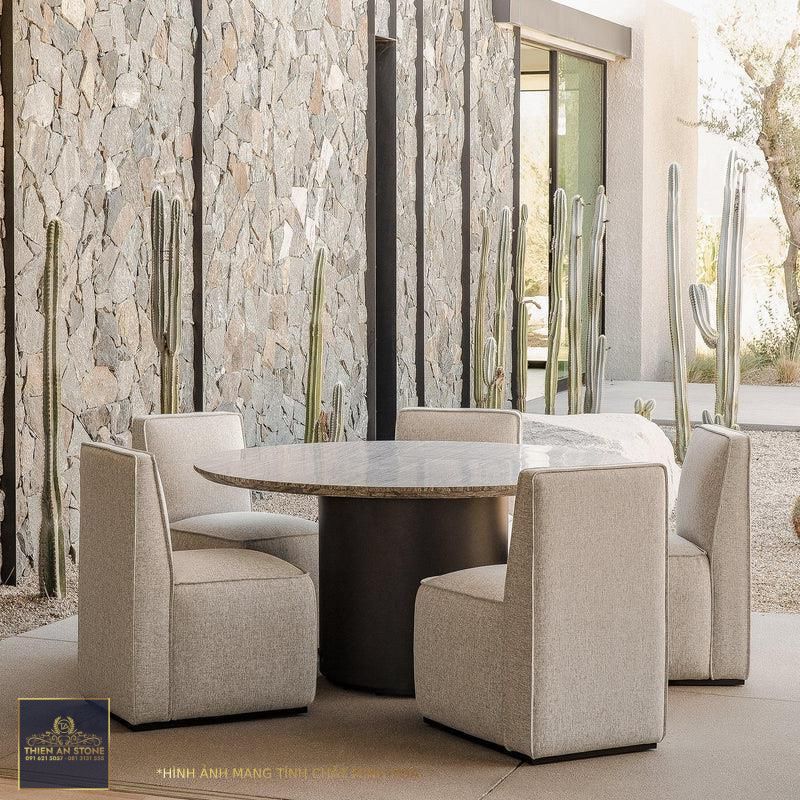 Bàn ăn tròn mặt đá tự nhiên
