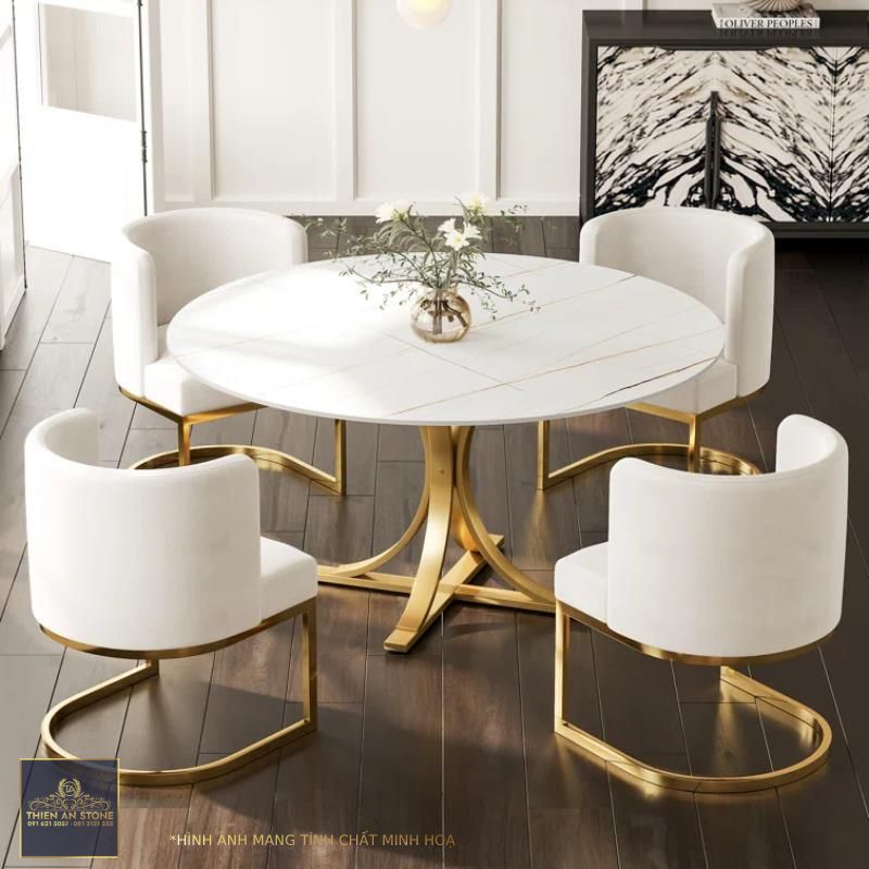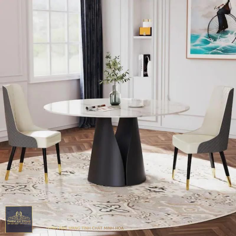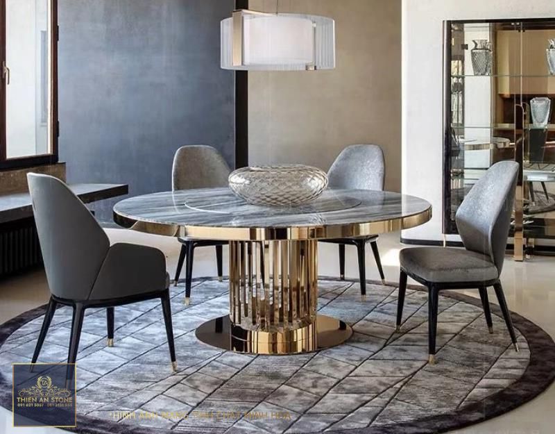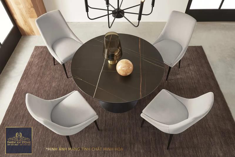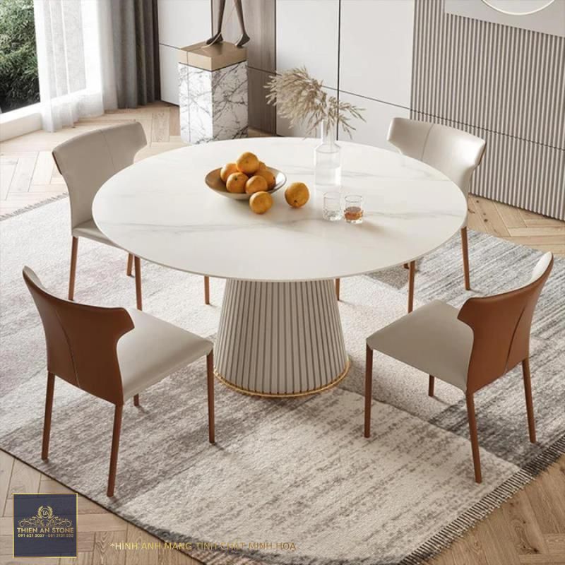 Bàn ăn tròn mặt đá có vẻ đẹp sang trọng, hiện đại, phù hợp với nhiều phong cách nội thất khác nhau. Màu sắc và vân đá đa dạng mang đến sự lựa chọn phong phú cho người dùng. Bạn có thể dễ dàng lựa chọn một mẫu bàn ăn tròn mặt đá phù hợp với không gian và sở thích của gia đình mình.