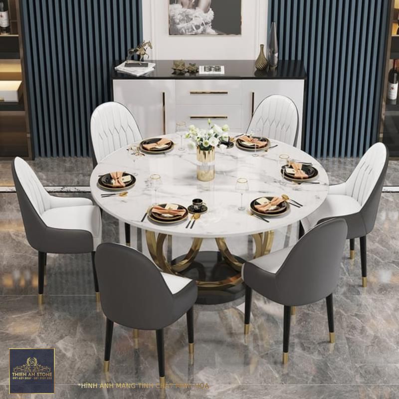Bàn ăn là một trong những món đồ nội thất quan trọng nhất trong không gian phòng ăn. Nó không chỉ là nơi để gia đình quây quần bên nhau thưởng thức những bữa cơm ngon mà còn là một điểm nhấn mang đến vẻ đẹp sang trọng, hiện đại cho căn bếp. Trong những năm gần đây, các mẫu bàn ăn tròn mặt đá đang được nhiều gia đình lựa chọn bởi những ưu điểm vượt trội về chất lượng, thẩm mỹ và giá trị sử dụng.