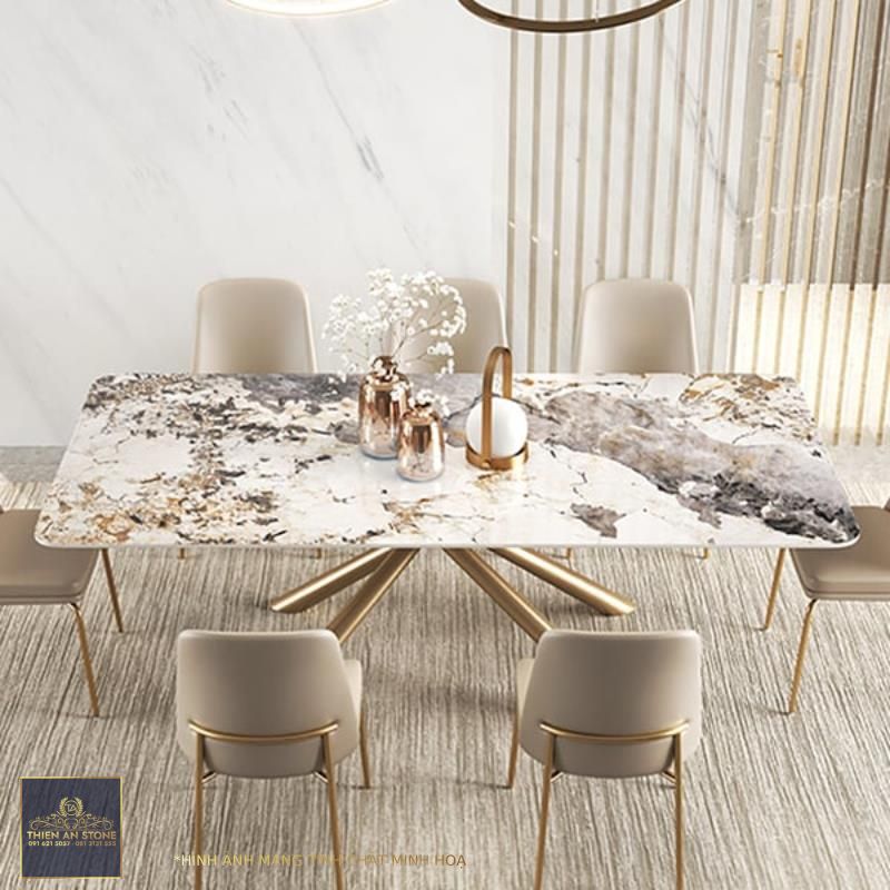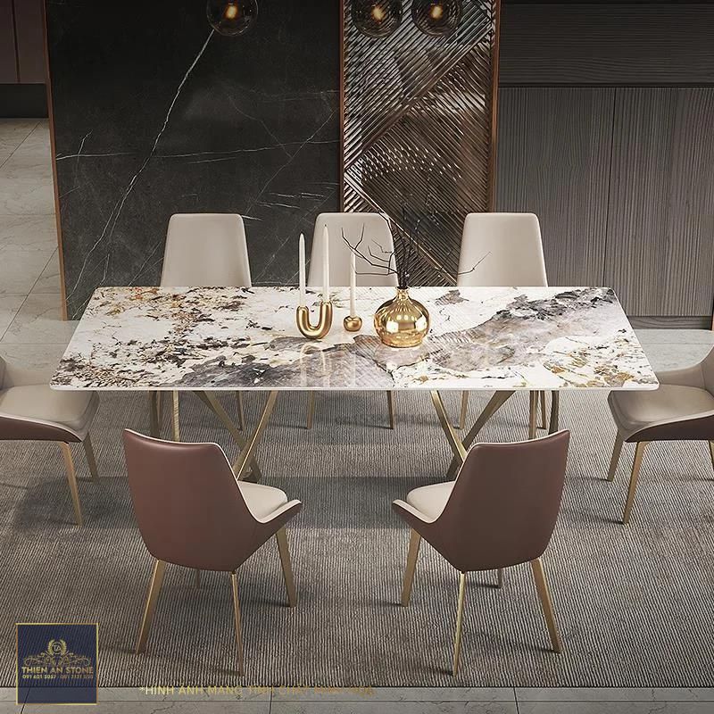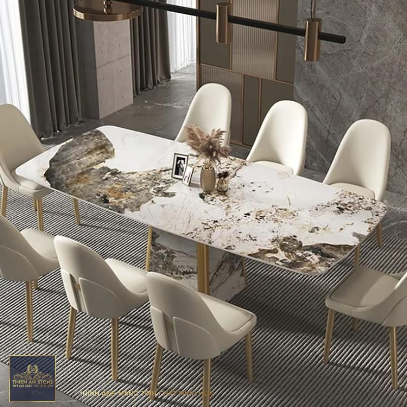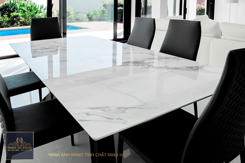 Ngoài ra, mặt bàn đá tự nhiên còn có độ bền với nhiệt độ cao, không bị biến dạng hay bị ảnh hưởng bởi các chất hóa học. Điều này rất quan trọng trong việc bảo quản và sử dụng bàn ăn hàng ngày.