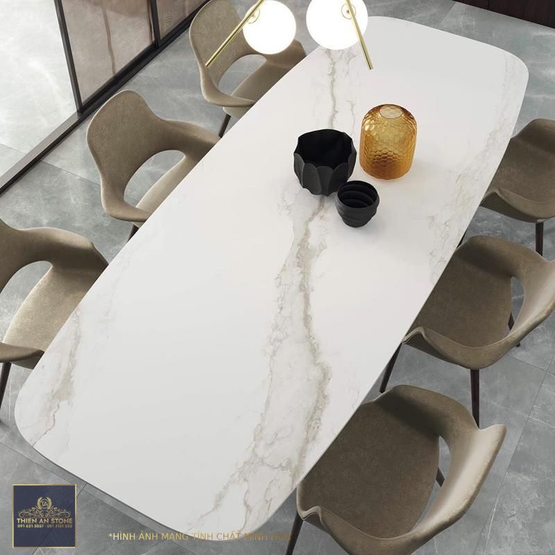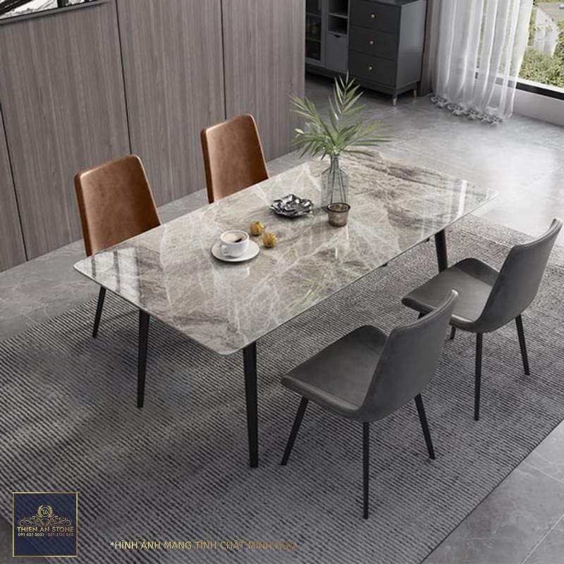 Mặt bàn đá ceramic có giá thành rẻ nhất trong 3 loại mặt bàn trên, tuy nhiên vẫn đảm bảo được tính thẩm mỹ và độ bền cao. Đá ceramic cũng có nhiều màu sắc và hoa văn đa dạng, giúp bạn dễ dàng lựa chọn cho không gian phòng ăn của mình.