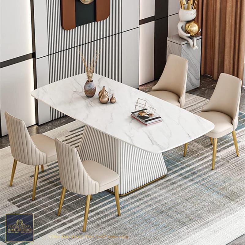 Bàn ăn là một trong những món đồ nội thất quan trọng nhất trong không gian phòng ăn của mỗi gia đình. Một bộ bàn ăn đẹp, sang trọng và phù hợp sẽ góp phần tô điểm cho không gian phòng ăn thêm ấm cúng và tiện nghi. Đối với gia đình có 6 thành viên, việc lựa chọn bộ bàn ăn sao cho phù hợp là điều không hề dễ dàng. Trong bài viết này, chúng tôi sẽ giới thiệu đến bạn 22+ mẫu bộ bàn ăn mặt đá hình chữ nhật phù hợp cho gia đình 6 người.
