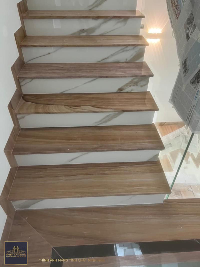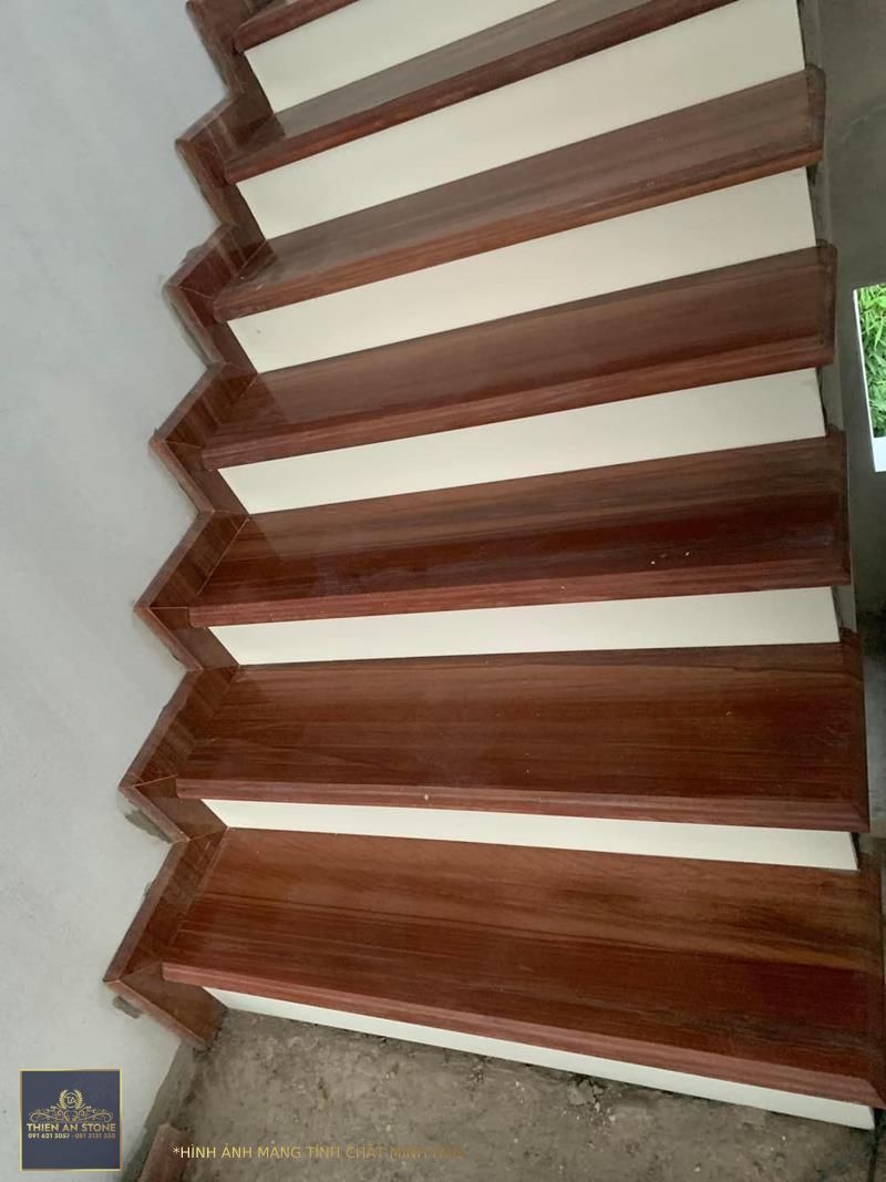 Kích thước phù hợp: Đá vân gỗ thường có các kích thước tiêu chuẩn như 60x30cm, 80x40cm hoặc 100x50cm. Việc lựa chọn kích thước phù hợp với cấu trúc cầu thang của bạn sẽ tạo nên sự cân đối và thẩm mỹ cho không gian.