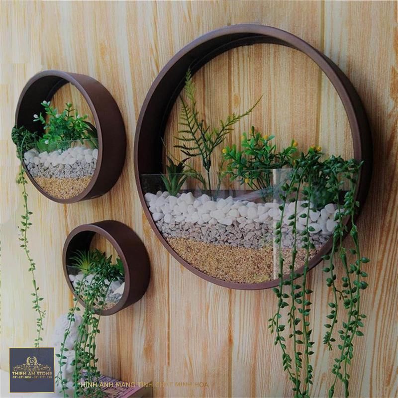 tiểu cảnh treo tường giúp bạn tận dụng những bức tường trống trải, biến chúng thành những khu vườn nhỏ đầy sức sống. Với sự kết hợp giữa cây cối và các vật liệu trang trí như đá, sỏi hay gỗ, tiểu cảnh treo tường tạo nên một không gian xanh mát và thư thái. Bạn có thể lựa chọn các loại cây nhỏ như cây cọ, cây xanh lá dày hay cây hoa để tạo nên một bức tranh thiên nhiên đa dạng và phong phú.