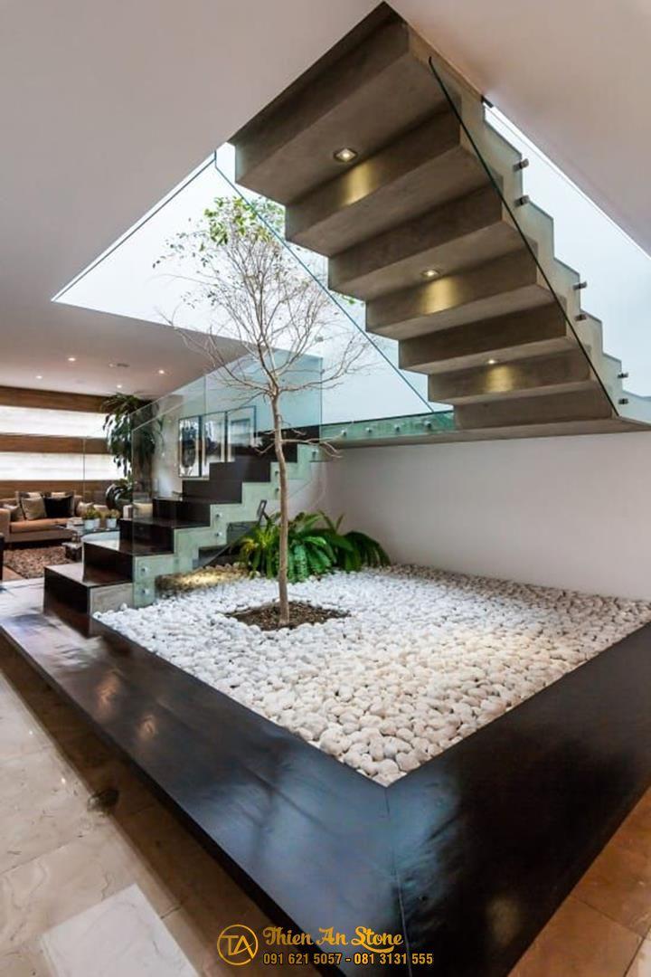 Một trong những cách đơn giản nhất để tạo tiểu cảnh khô cầu thang là sử dụng sỏi và đá. Bạn có thể sắp xếp chúng theo ý thích của mình để tạo nên một không gian đẹp và tự nhiên. Nếu muốn tạo điểm nhấn cho tiểu cảnh, bạn có thể thêm vào một số cây cối hoặc các vật liệu trang trí khác như bình hoa, đèn trang trí,…