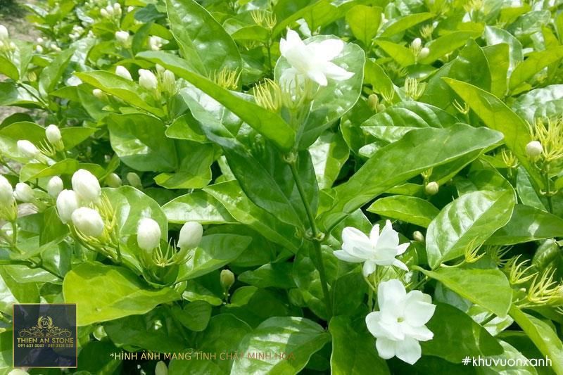 Với những bông hoa trắng tinh khiết và hương thơm dịu nhẹ, cây nhài mang đến vẻ đẹp lãng mạn và tinh tế cho khu vực xung quanh hồ cá Koi. Bên cạnh đó, loại cây này còn có tác dụng làm sạch không khí và giúp cân bằng hệ sinh thái trong hồ.