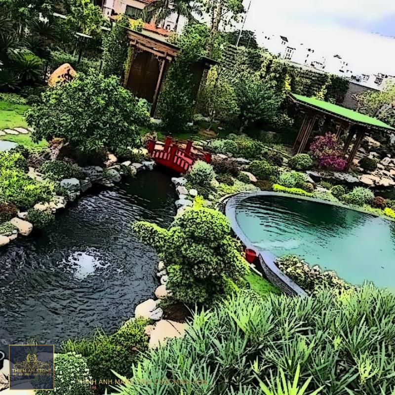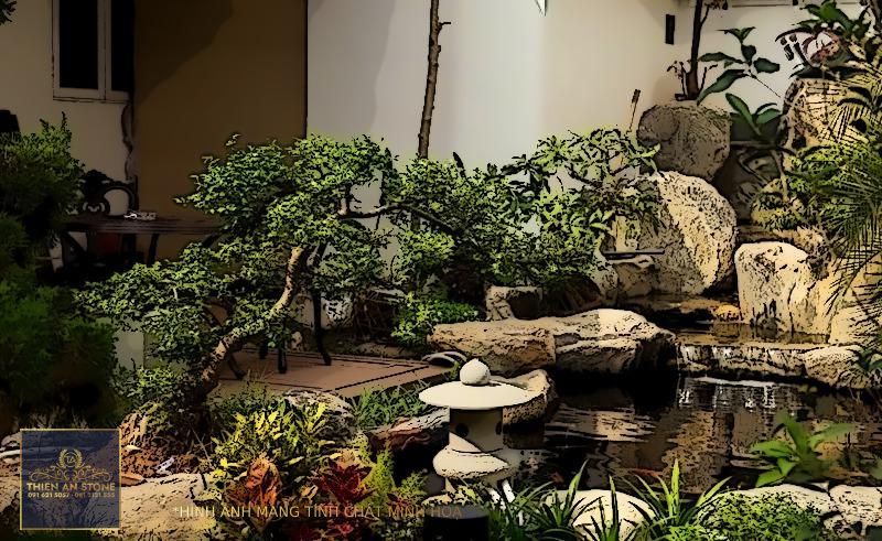 - Bố Trí Cây Cối và Đá Cảnh: Sử dụng cây cối, hoa, và đá cảnh để tạo nên một cảnh vật hài hòa và độc đáo. Bố trí chúng một cách tự nhiên và hài hòa với không gian.