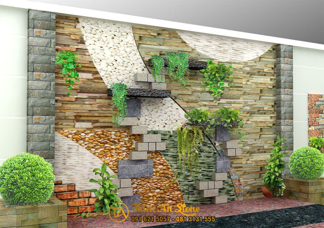 Mẫu tiểu cảnh tường kết hợp với tranh đá