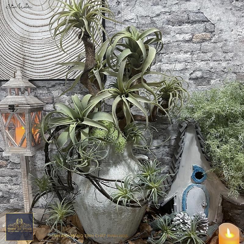 tiểu cảnh cây không khí có thể được trang trí theo nhiều cách khác nhau, tạo nên những điểm nhấn độc đáo và thu hút cho không gian sống. Bạn có thể sử dụng các loại chậu, bình thủy tinh hay treo cây để tạo nên một tiểu cảnh đa dạng và sinh động.