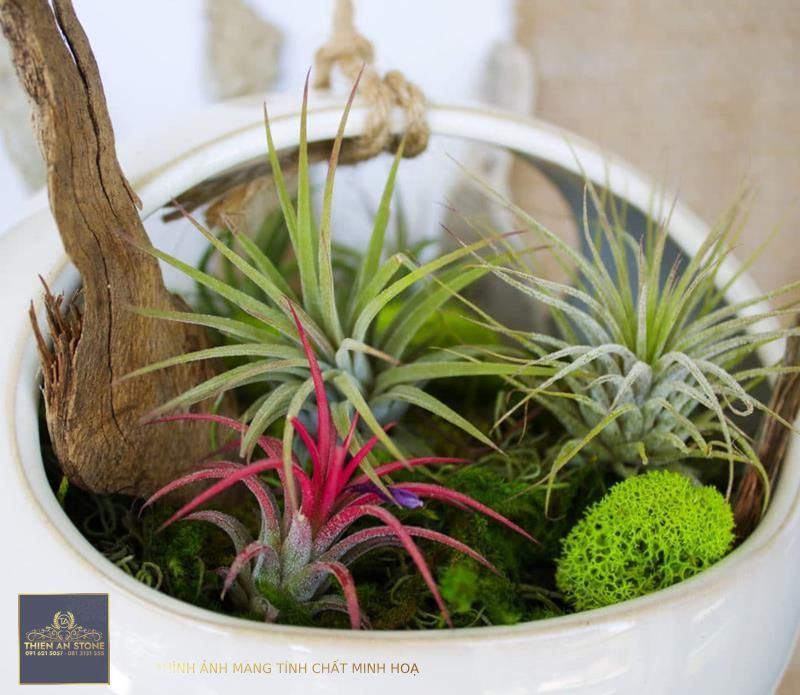 - Cây không khí: Chọn những cây không khí có kích thước và hình dáng phù hợp với tiểu cảnh của bạn.